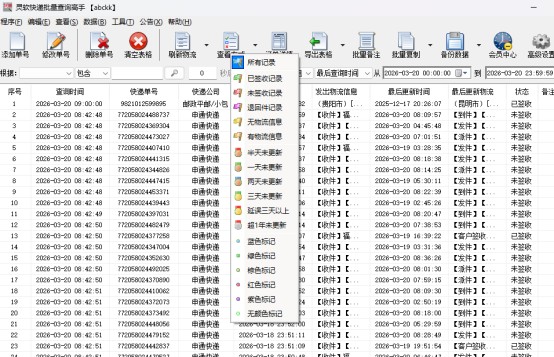 做电商最担心的就是物流异常,比如快递在转运中心滞留、派件失败、超时未更新,这些问题如果不能及时发现,很容易引发客户投诉。快递批量查询高手的智能筛选功能帮我解决了这个痛点:
